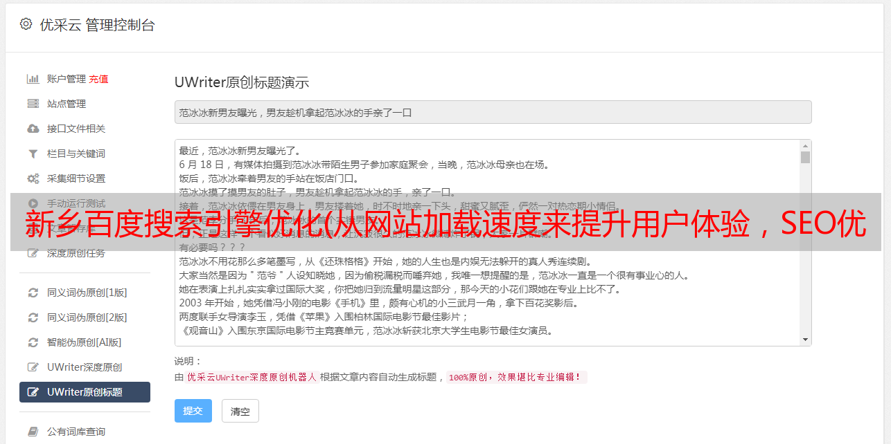 优采云 发布时间: 2021-10-31 14:17新乡百度搜索引擎优化(从网站加载速度来提升用户体验,SEO优化的小技巧)