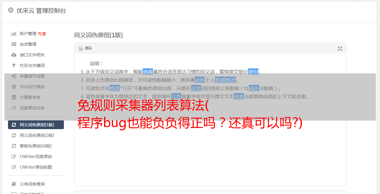 免规则采集器列表算法( 程序bug也能负负得正吗?还真可以吗?)