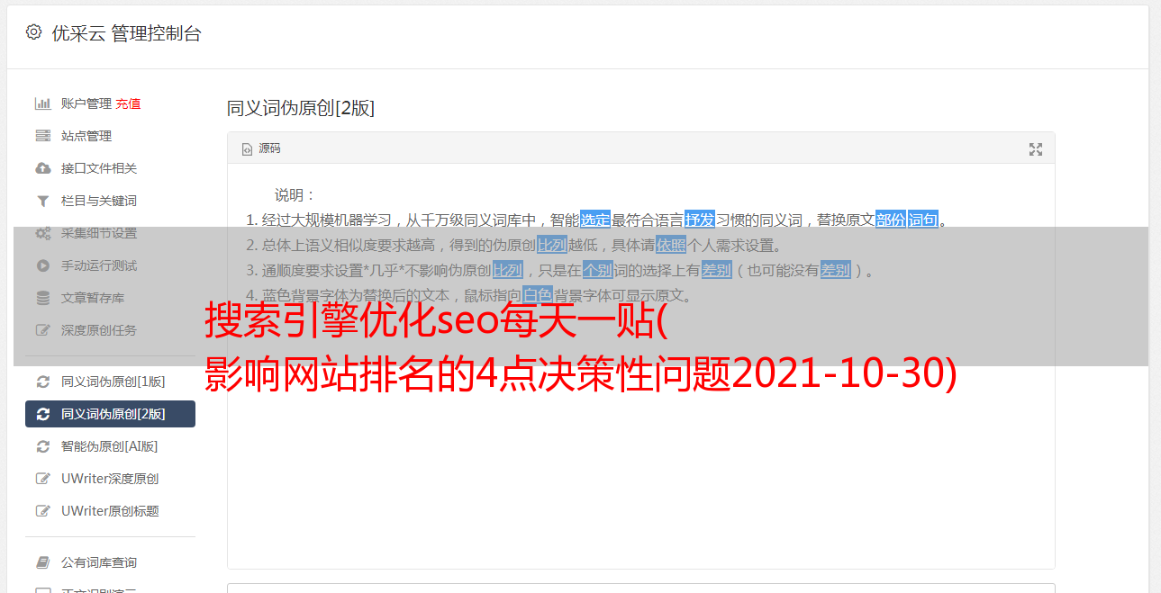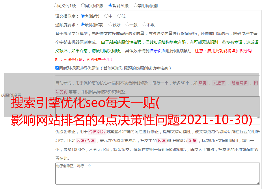 搜索引擎优化seo每天一贴( 影响网站排名的4点决策性问题2021-10-30)