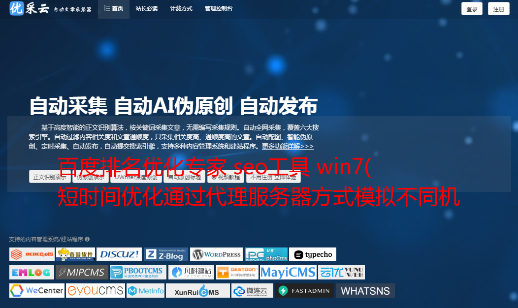 百度排名优化专家 seo工具 win7( 短时间优化通过代理服务器方式模拟不同机器环境网站流量和排名)