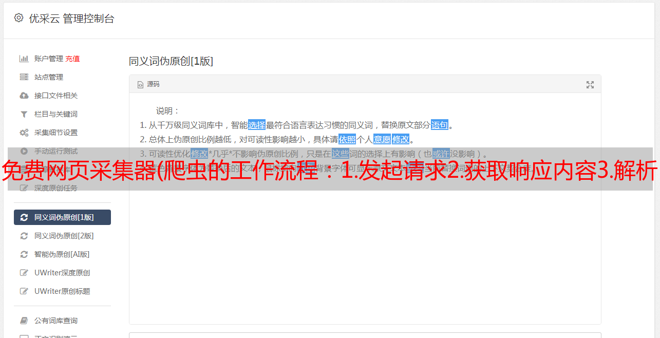 优采云 发布时间: 2021-11-01 13:04免费网页采集器(爬虫的工作流程:1.发起请求2.获取响应内容3.解析