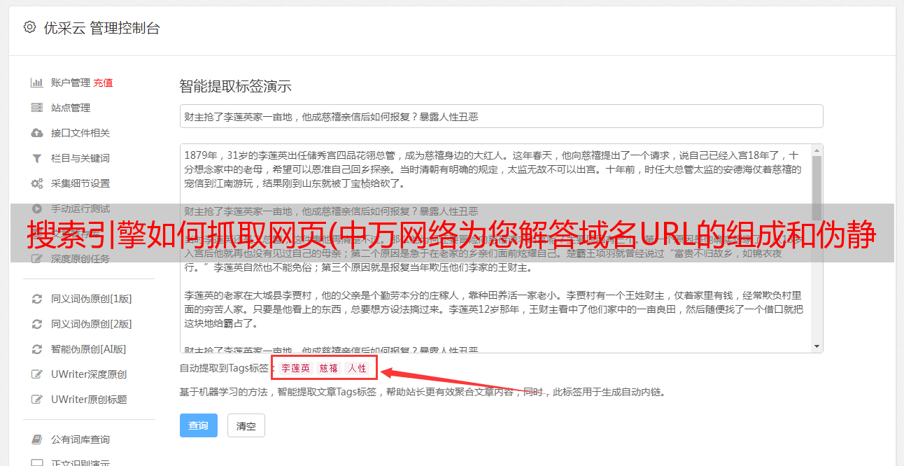 优采云 发布时间: 2021-11-02 01:01搜索引擎如何抓取网页(中万网络为您解答域名URL的组成和伪静态处理)