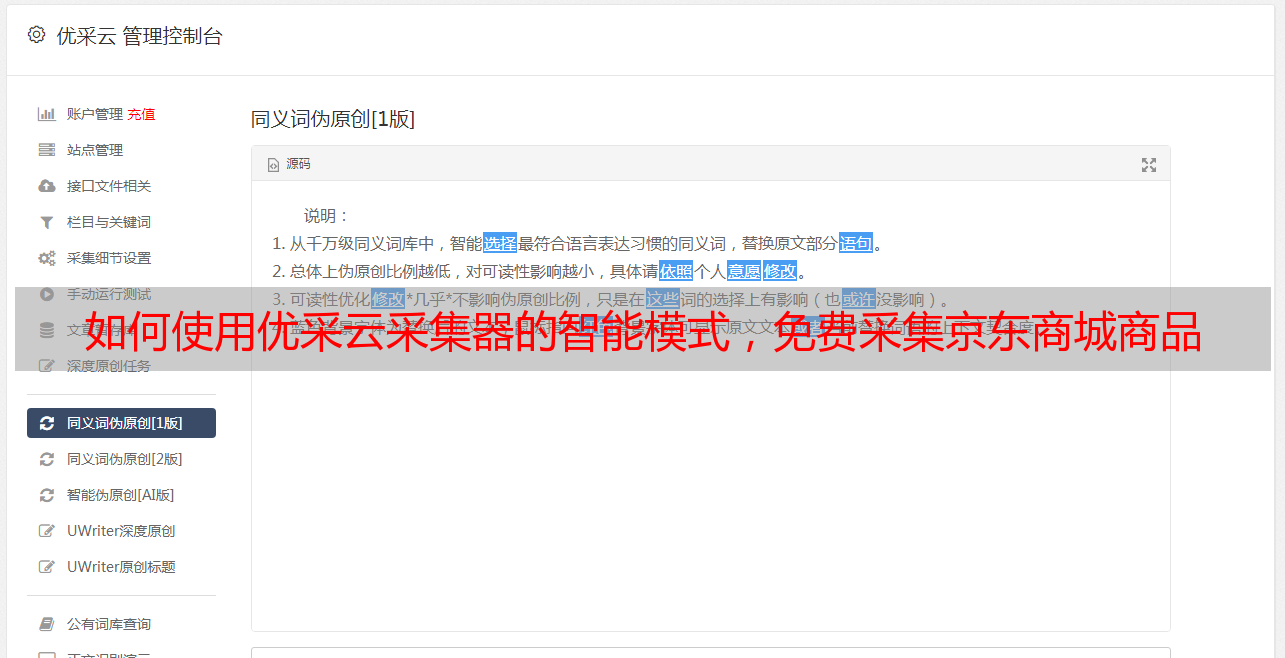 如何使用优采云采集器的智能模式,免费采集京东商城商品