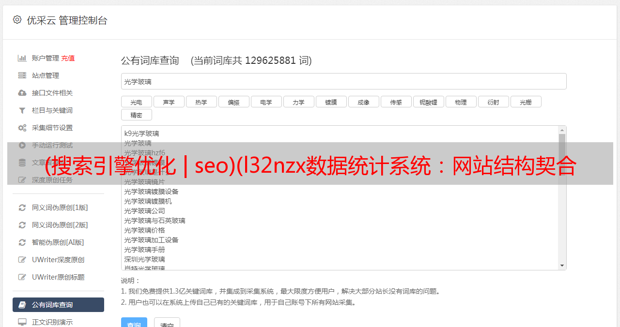 优采云 发布时间: 2021-11-02 10:00(搜索引擎优化 | seo)(l32nzx数据统计系统:网站结构契合搜索引擎的爬虫喜爱则有利于搜索引擎)