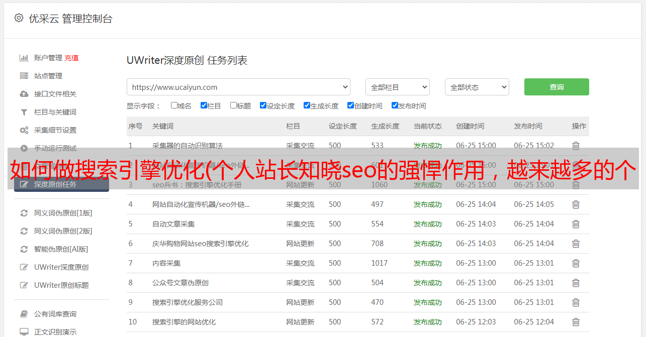 优采云 发布时间: 2021-11-02 12:16如何做搜索引擎优化(个人站长知晓seo的强悍作用,越来越多的个人想通过做seo)