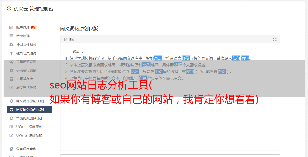 优采云 发布时间: 2021-11-02 14:14seo网站日志分析工具(