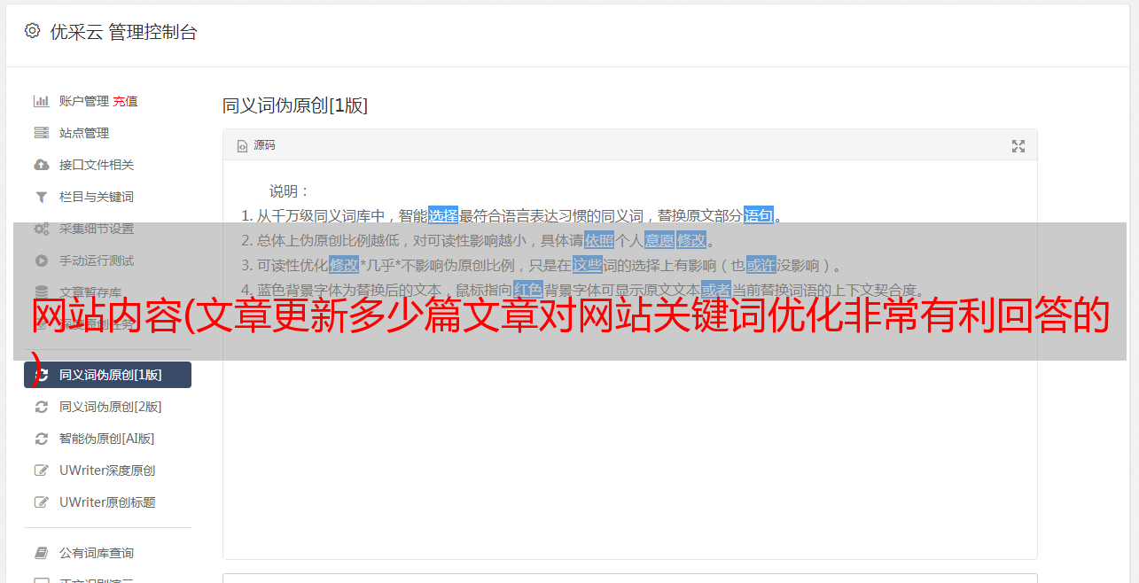 优采云 发布时间: 2021-11-02 22:11网站内容(文章更新多少篇文章对网站关键词优化非常有利回答的