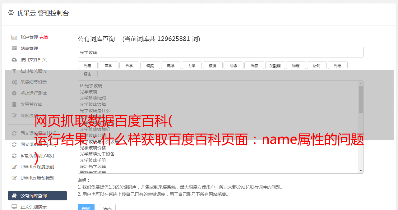 优采云 发布时间: 2021-11-03 02:09网页抓取数据百度百科(
