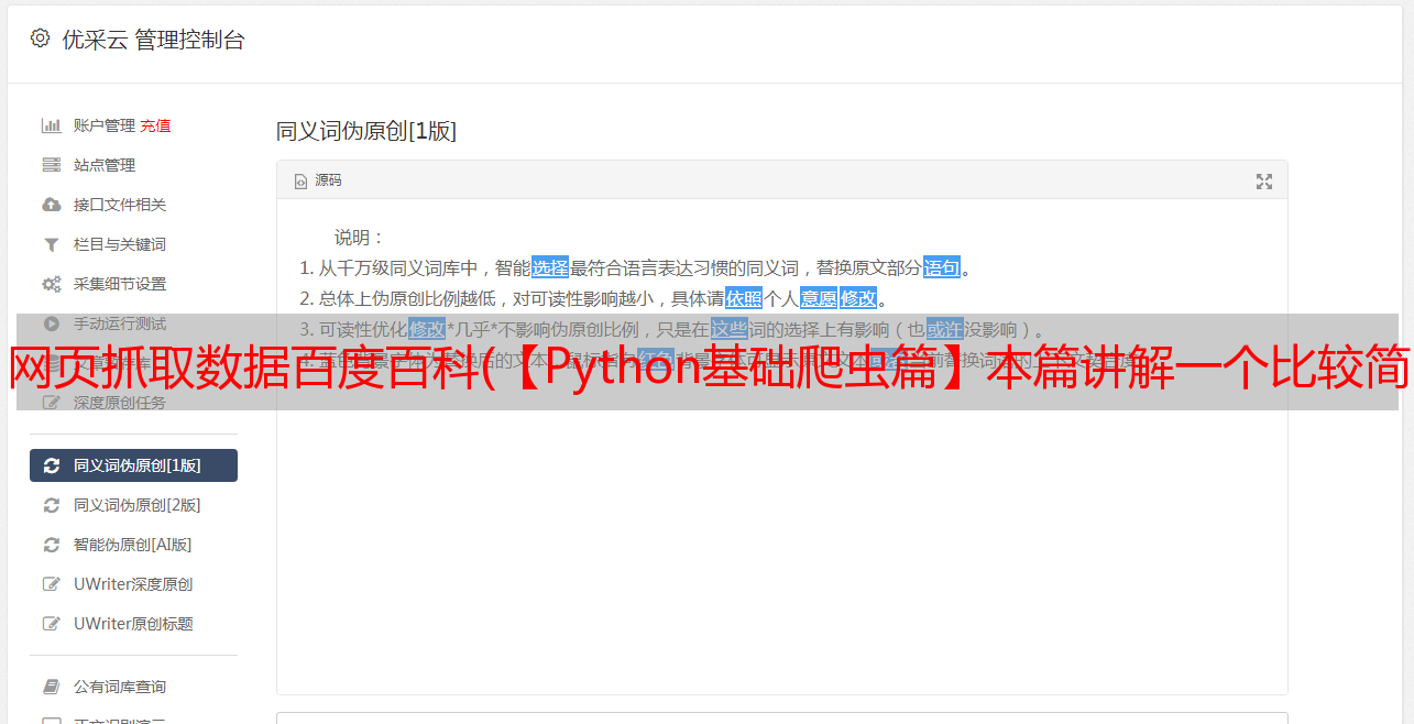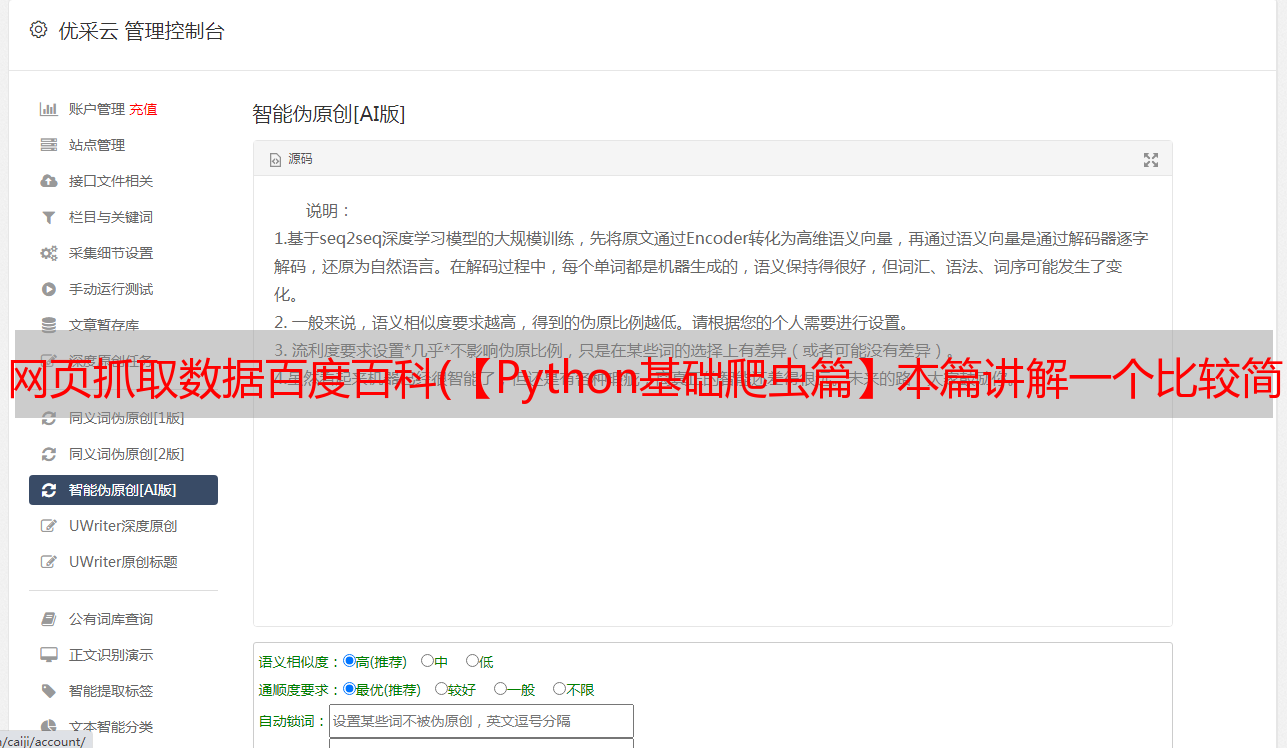 优采云 发布时间: 2021-11-03 06:07网页抓取数据百度百科(【Python基础爬虫篇】本篇讲解一个比较简单的Python爬虫)