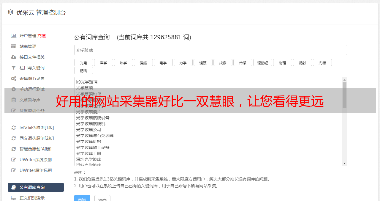 优采云 发布时间: 2021-03-23 06:12好用的网站采集器好比一双慧眼,让您看得更远