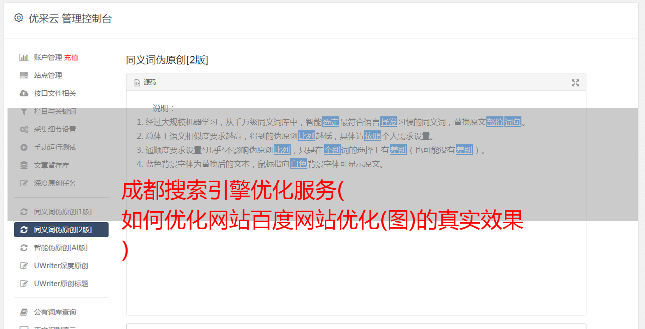 优采云 发布时间: 2021-11-04 04:06成都搜索引擎优化服务(