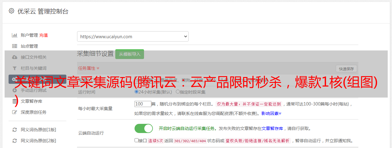 优采云 发布时间: 2021-11-04 09:08关键词文章采集源码(腾讯云:云产品限时秒杀,爆款1核(组图)