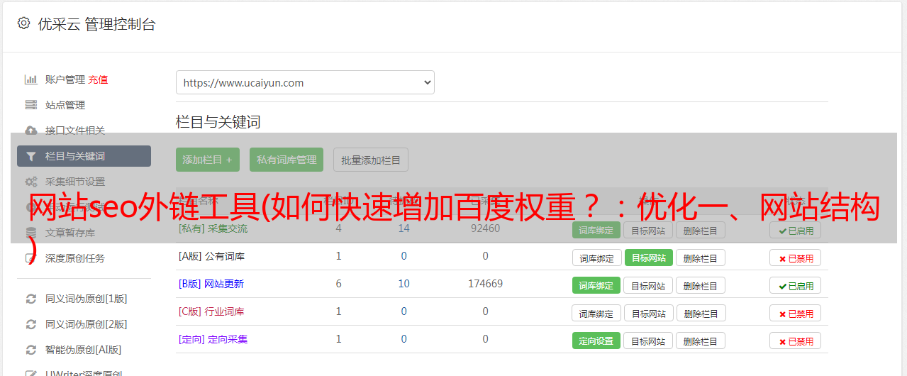 优采云 发布时间: 2021-11-04 11:05网站seo外链工具(如何快速增加百度权重?:优化一、网站结构