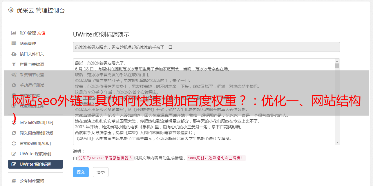 网站seo外链工具(如何快速增加百度权重?:优化一、网站结构 )