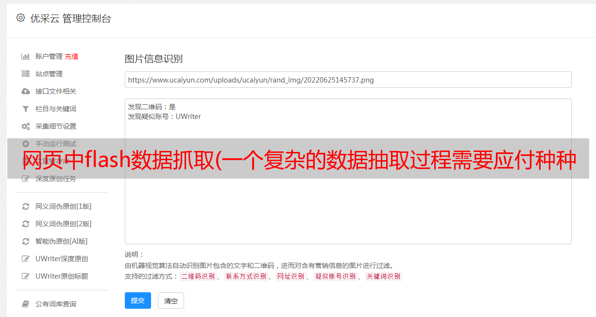 优采云 发布时间: 2021-11-04 12:06网页中flash数据抓取(一个复杂的数据抽取过程需要应付种种障碍例如数据)