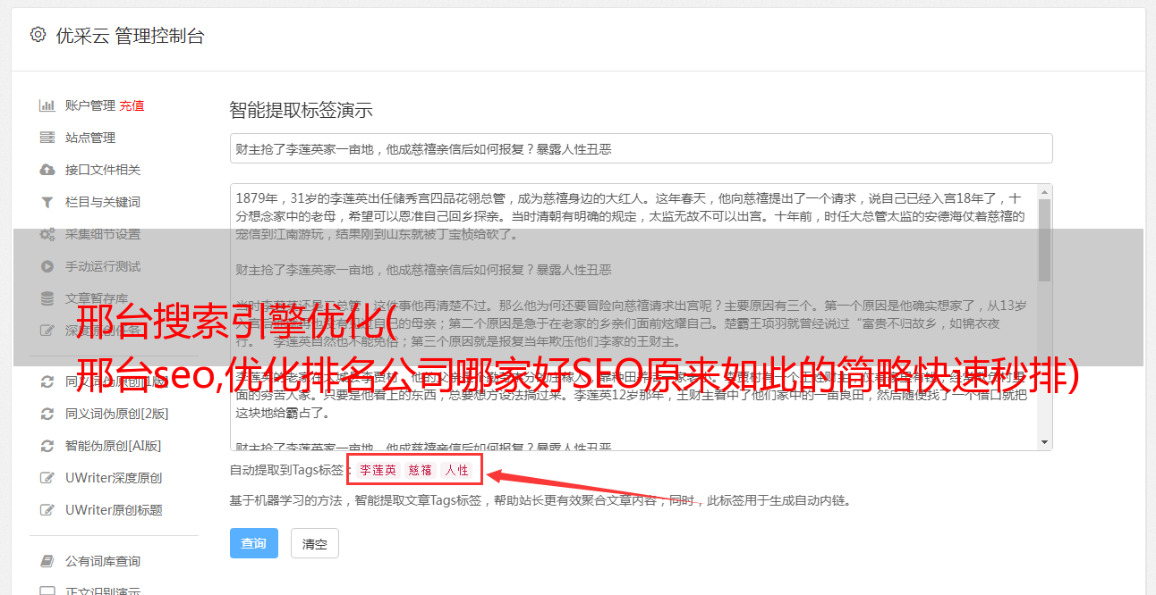 网站 的每个标签都是从相关内容聚合而来。一个多小时的标签就相当于一个小话题,话题页面的排名比一般页面要好,所以网站的我们也要考虑标签优化。
