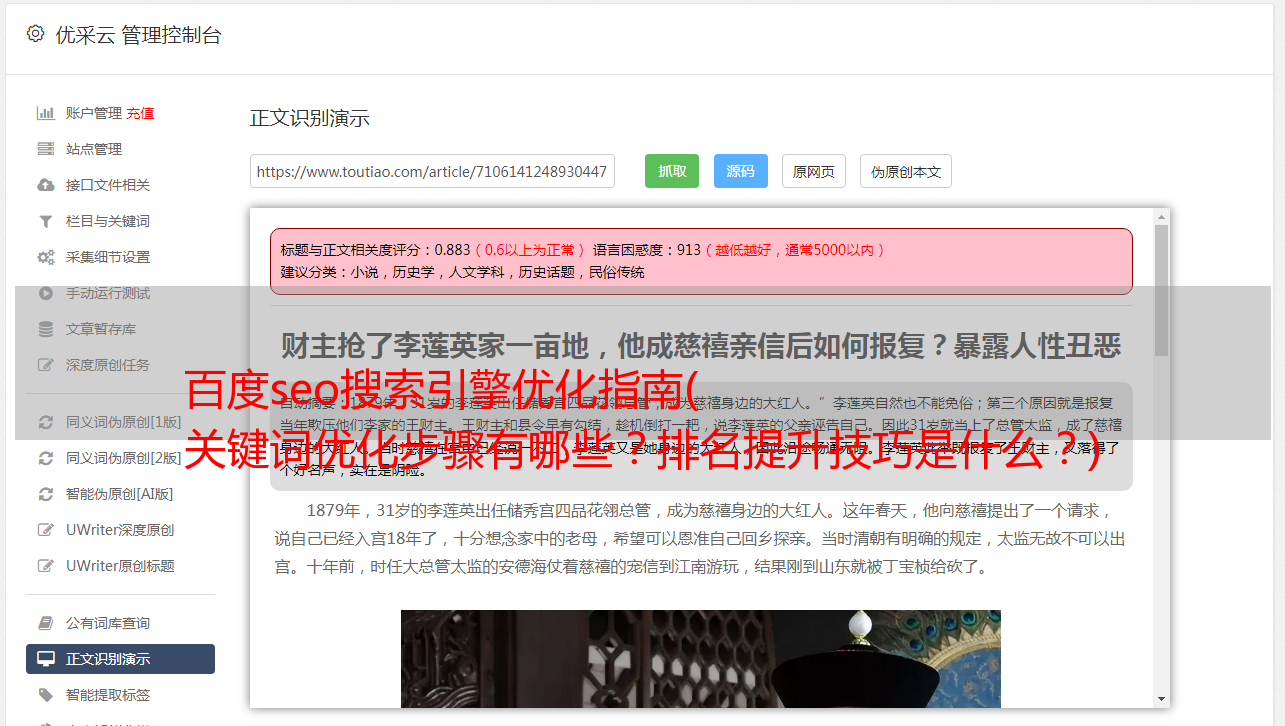 优采云 发布时间: 2021-11-04 16:02百度seo搜索引擎优化指南(