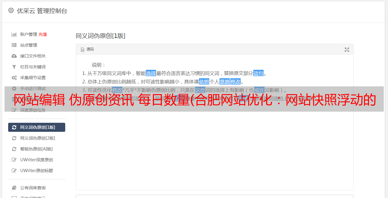 网站编辑 伪原创资讯 每日数量(合肥网站优化:网站快照浮动的问题是稳定网站权重的最好方法)