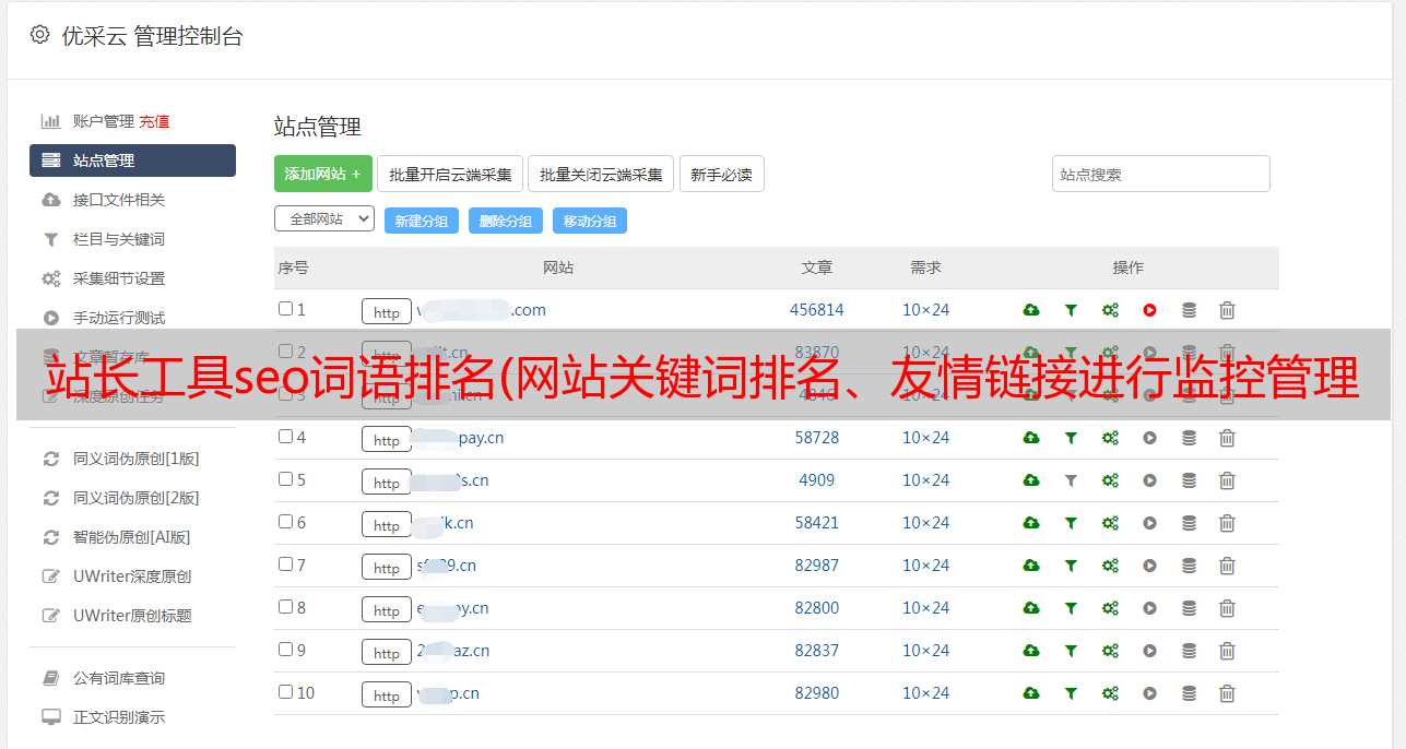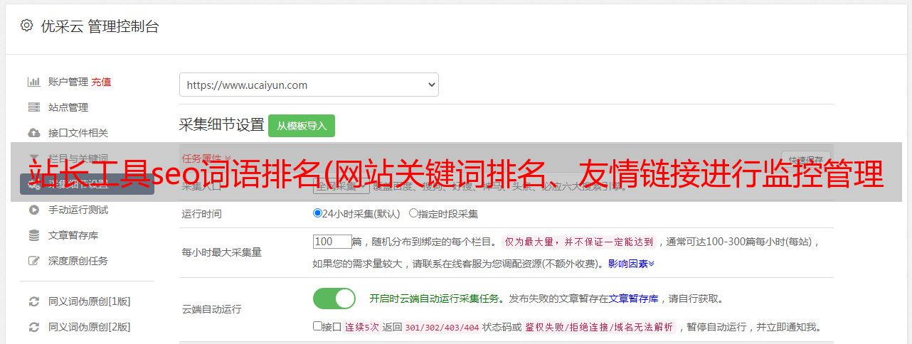优采云 发布时间: 2021-11-04 17:13站长工具seo词语排名(网站关键词排名、友情链接进行监控管理功能的介绍及功能)