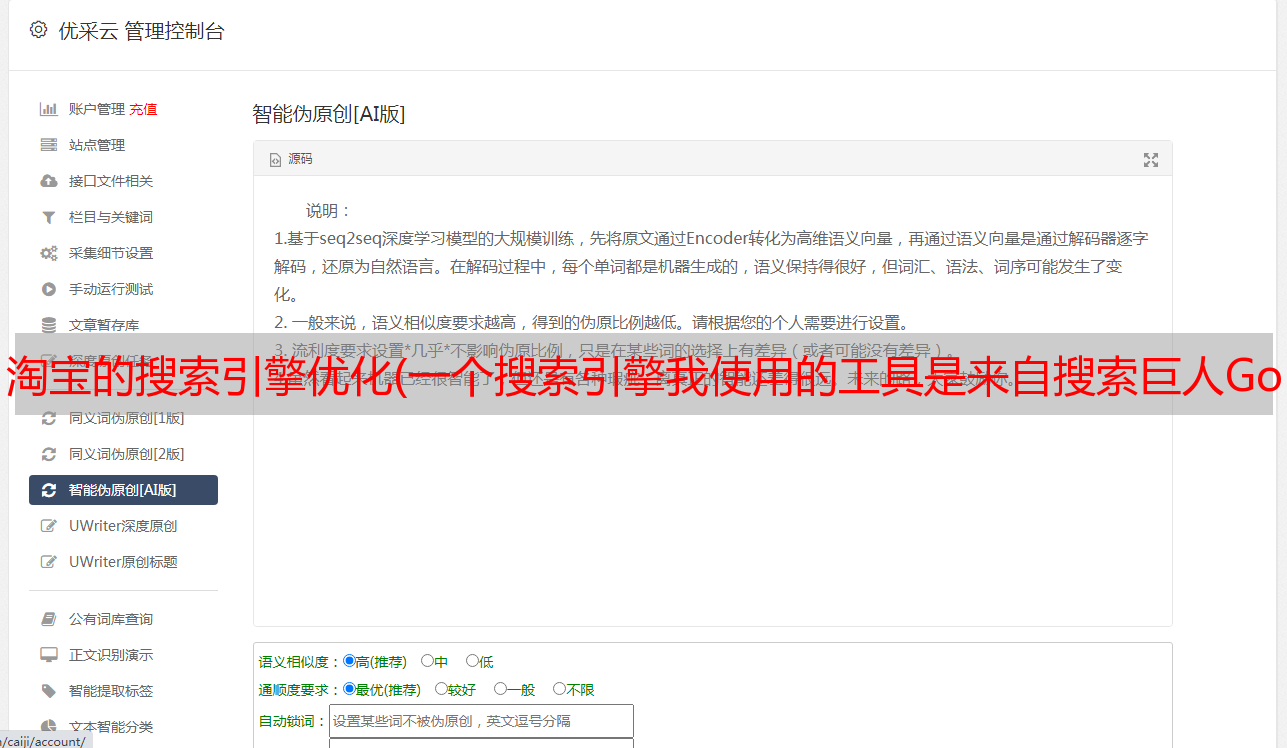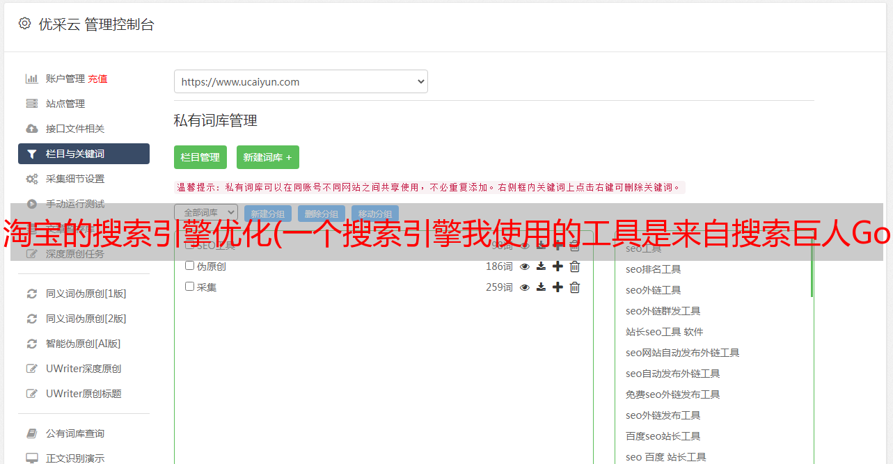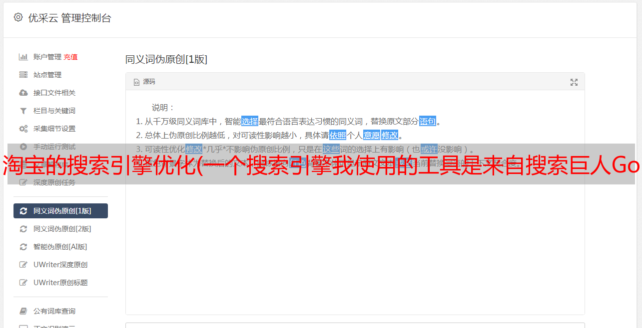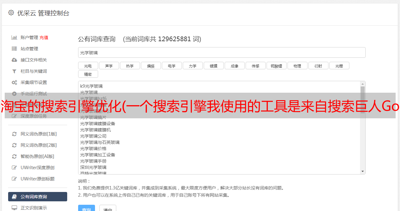 优采云 发布时间: 2021-11-04 20:19淘宝的搜索引擎优化(一个搜索引擎我使用的工具是来自搜索巨人Google提供的)