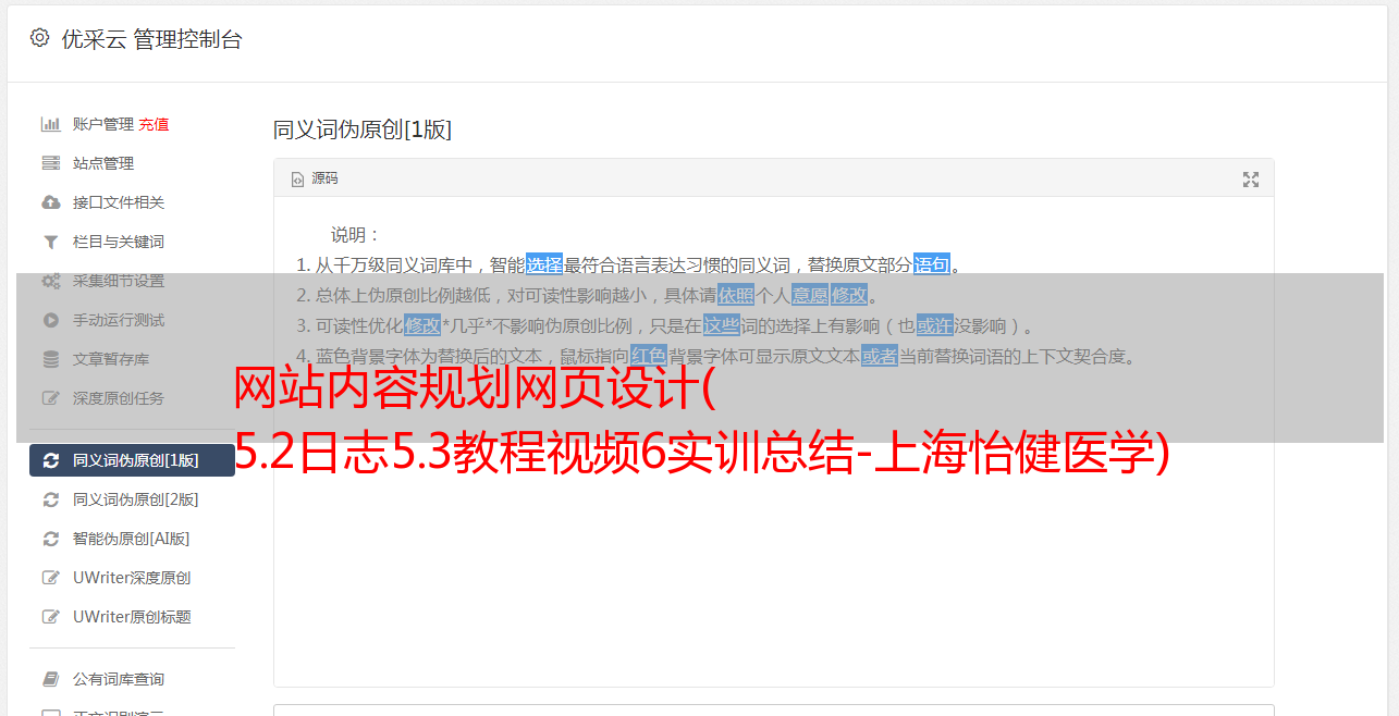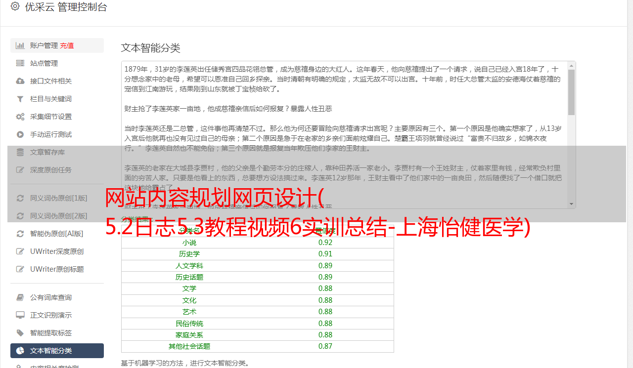 网站内容规划网页设计( 5.2日志5.3教程视频6实训总结-上海怡健医学)