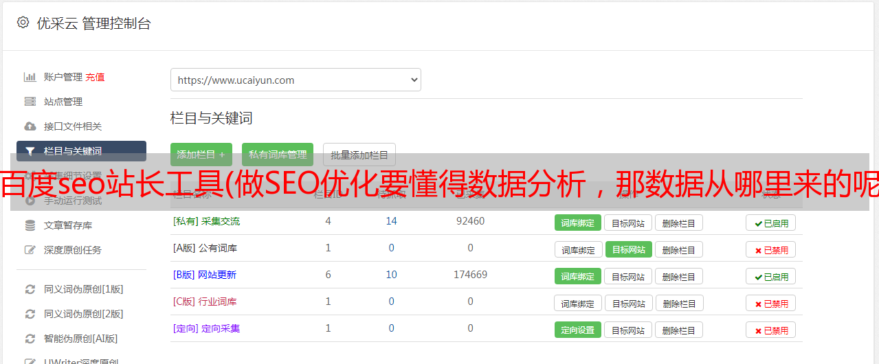 优采云 发布时间: 2021-11-05 02:28百度seo站长工具(做SEO优化要懂得数据分析,那数据从哪里来的呢?