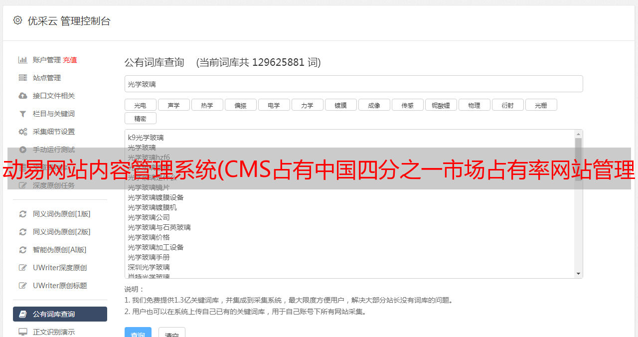 优采云 发布时间: 2021-11-05 07:12动易网站内容管理系统(CMS占有中国四分之一市场占有率网站管理系统商品