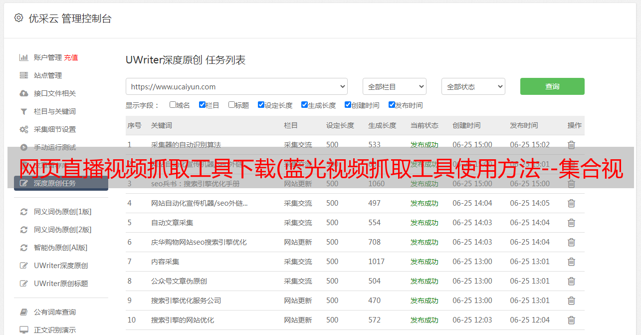 优采云 发布时间: 2021-11-05 12:05网页直播视频抓取工具下载(蓝光视频抓取工具使用方法--集合视频编辑工具)