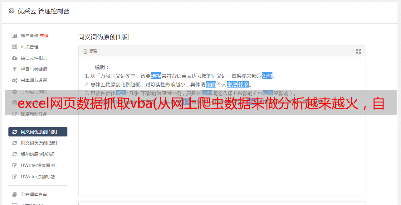 优采云 发布时间: 2021-11-05 15:02excel网页数据抓取vba(从网上爬虫数据来做分析越来越火,自然不能被时代落下)