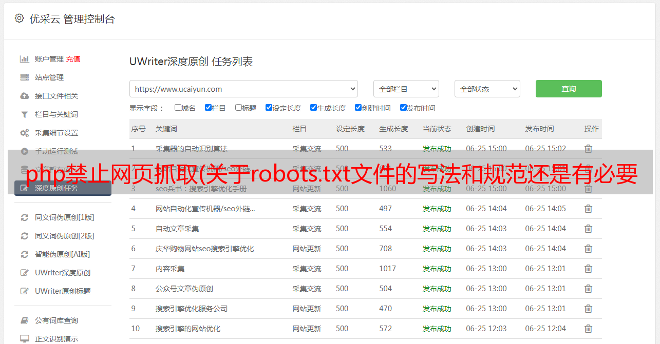 优采云 发布时间: 2021-11-05 20:02php禁止网页抓取(关于robots.txt文件的写法和规范还是有必要普及一下)
