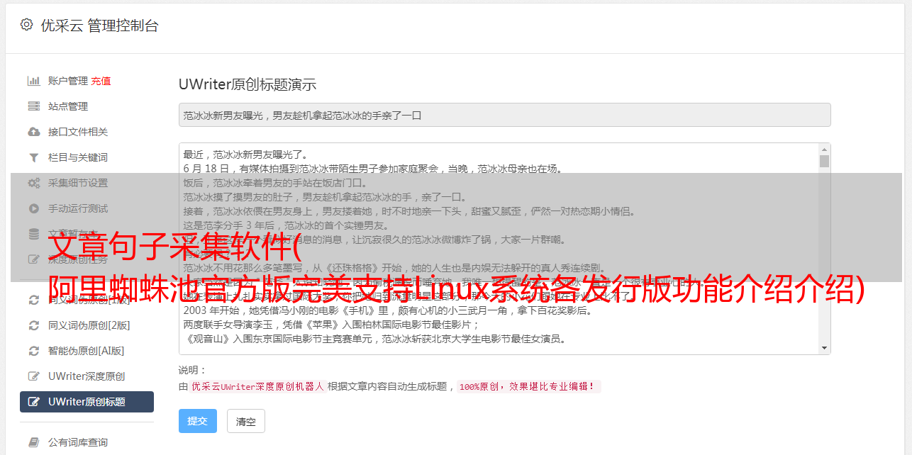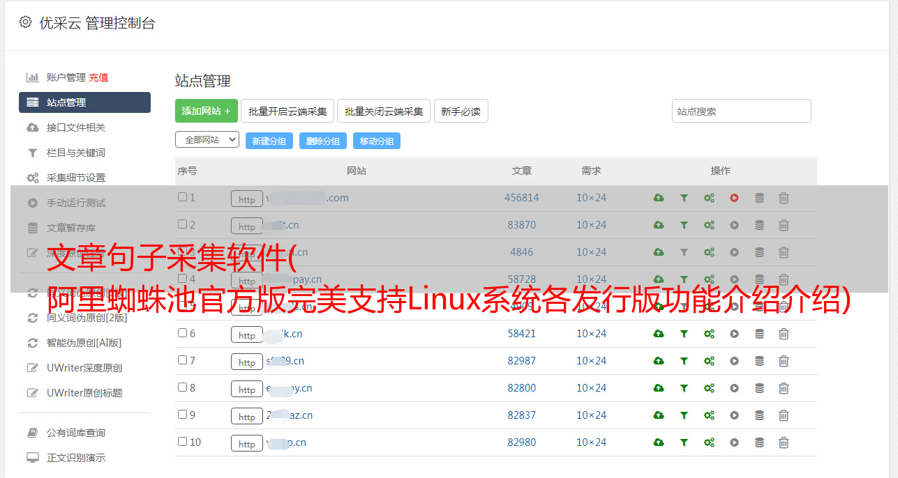 文章句子采集软件( 阿里蜘蛛池官方版完美支持Linux系统各发行版功能介绍介绍)