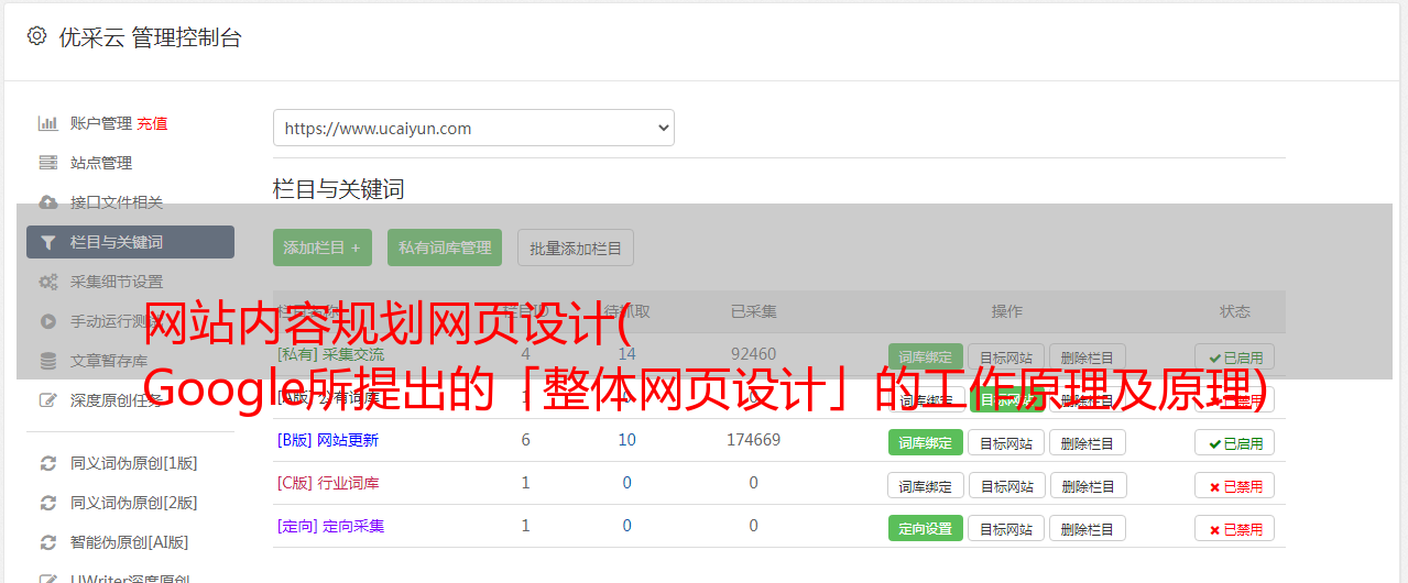 优采云 发布时间: 2021-11-05 21:18网站内容规划网页设计(