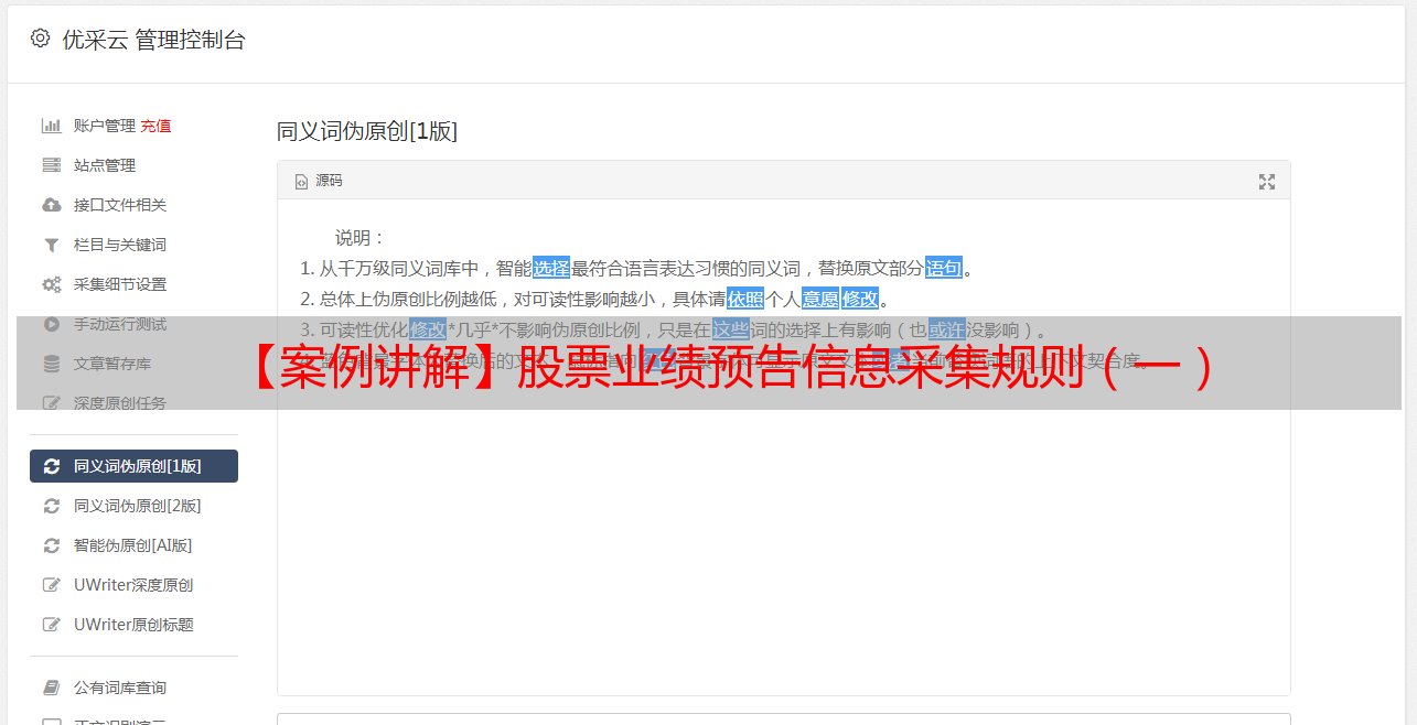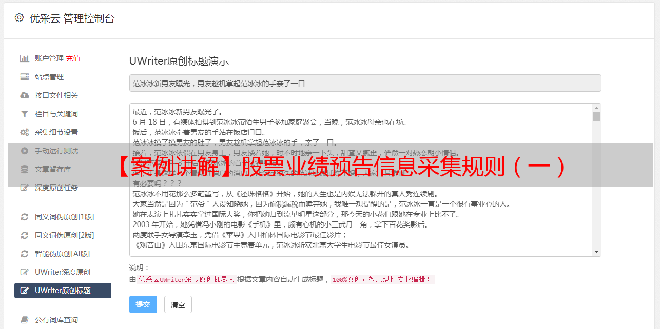 优采云 发布时间: 2021-03-25 00:04【案例讲解】股票业绩预告信息采集规则(一)