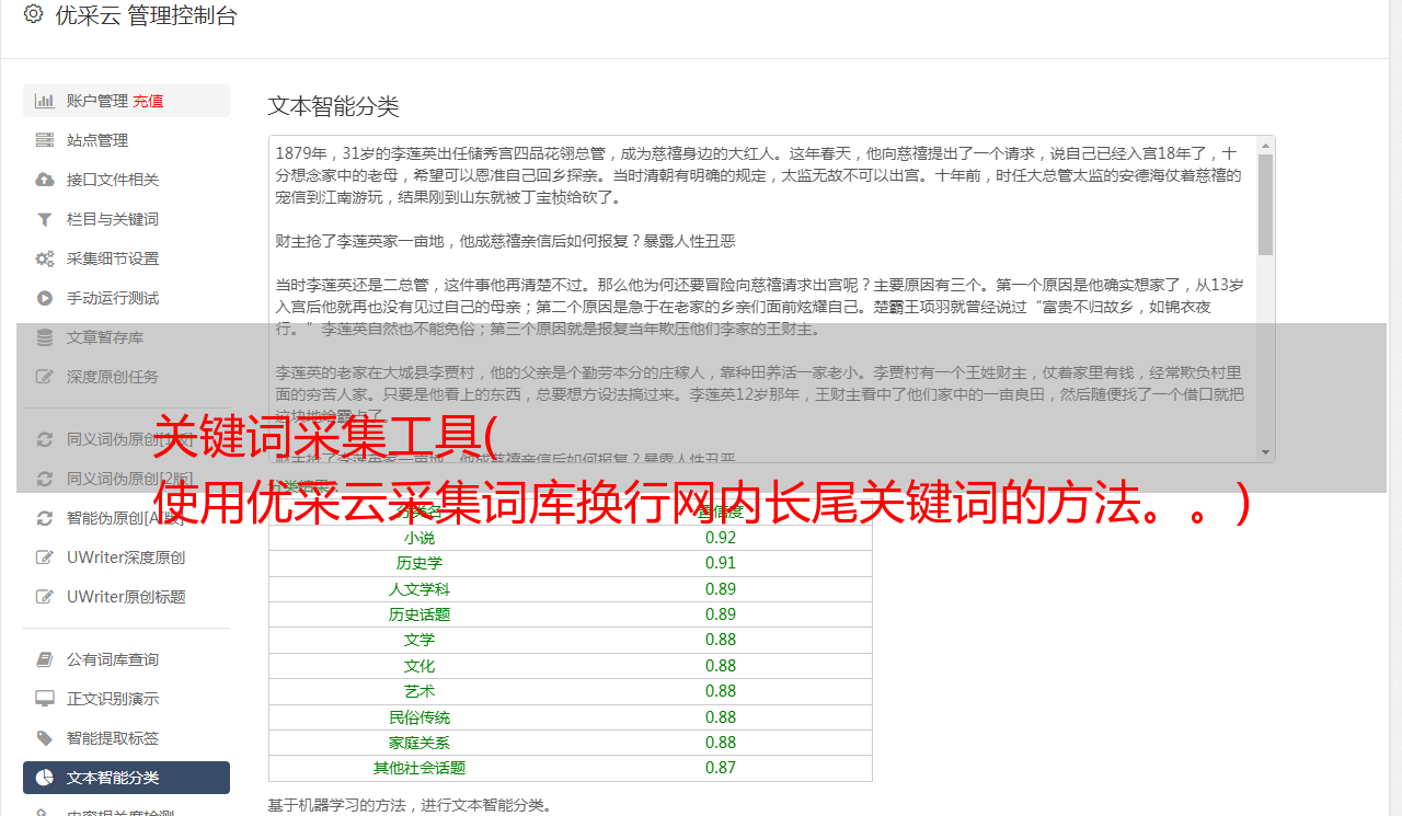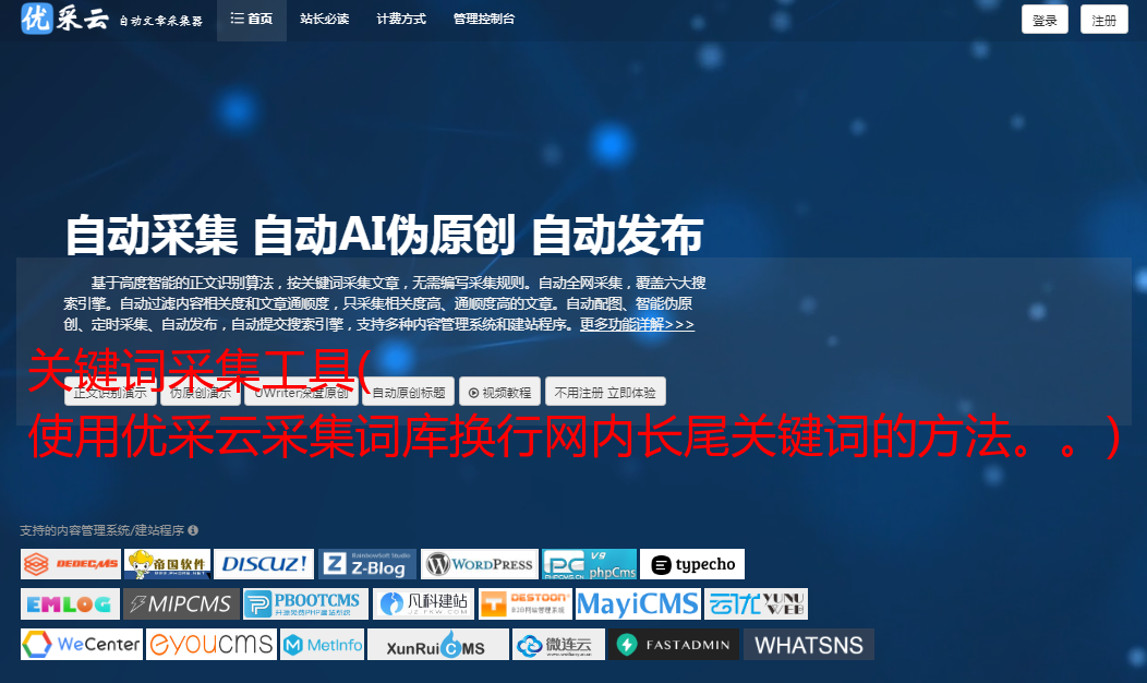 本文介绍在词库网络中使用优采云采集Long Tail关键词的方法。长尾关键词挖矿对于站长来说是一项非常重要的技能。尾巴在长尾理论中的作用不容忽视。在搜索引擎营销中使用长尾理论来制定关键词策略是非常有效的。