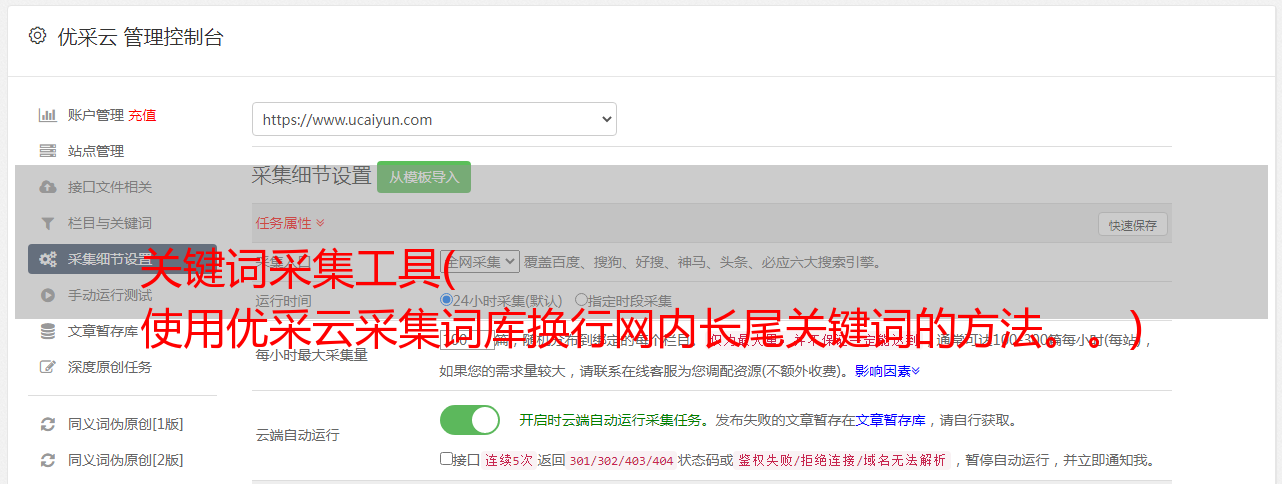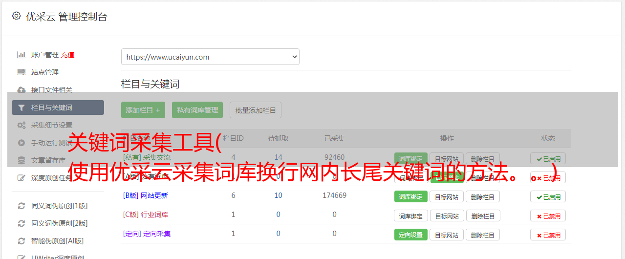 关键词采集工具( 使用优采云采集词库换行网内长尾关键词的方法。。)