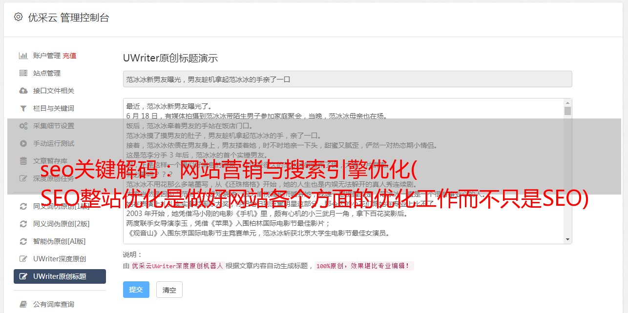 优采云 发布时间: 2021-11-06 17:02seo关键解码:网站营销与搜索引擎优化(