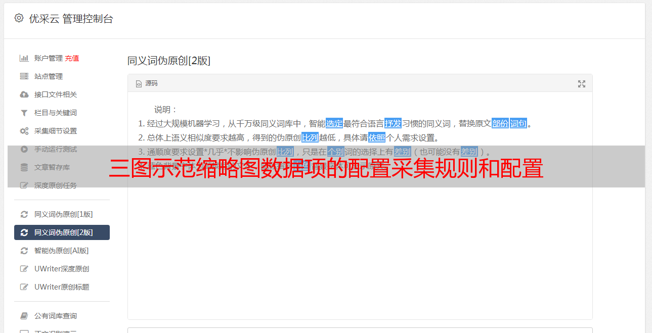 优采云 发布时间: 2021-03-25 07:38三图示范缩略图数据项的配置采集规则和配置