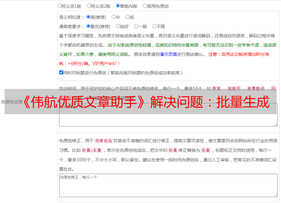 《伟航优质文章助手》解决问题:批量生成高质量内容