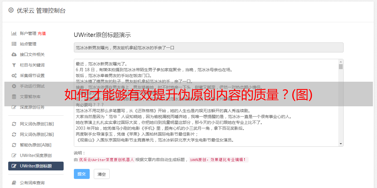 那么我们如何才能有效地提高伪原创内容的质量?我认为我们可以从以下几个方面入手,使伪原创内容和原创内容的质量可比。