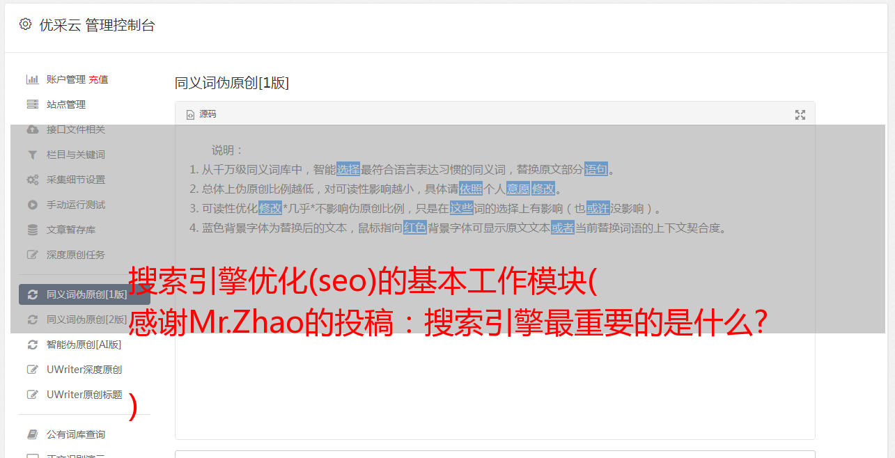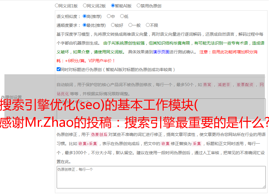 搜索引擎优化(seo)的基本工作模块( 感谢Mr.Zhao的投稿:搜索引擎最重要的是什么? )