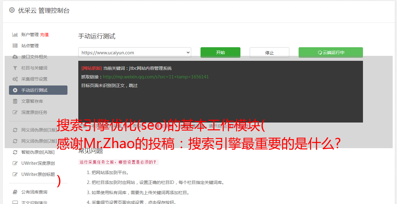 优采云 发布时间: 2021-11-07 03:15搜索引擎优化(seo)的基本工作模块(