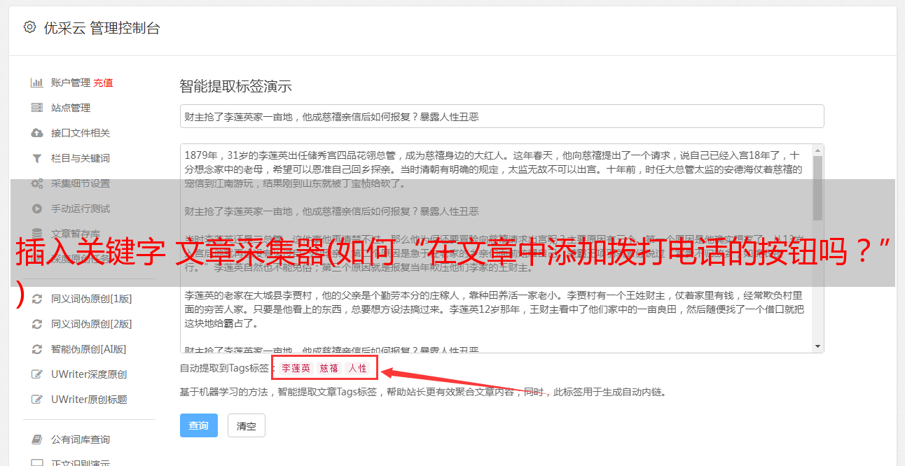 插入关键字 文章采集器(如何“在文章中添加拨打电话的按钮吗?” )