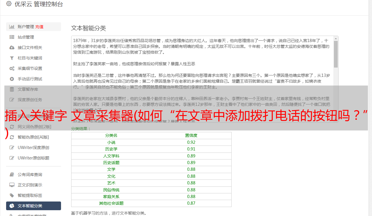优采云 发布时间: 2021-11-07 04:07插入关键字 文章采集器(如何“在文章中添加拨打电话的按钮吗?”