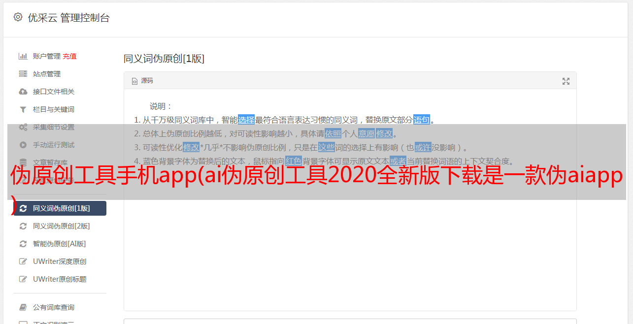 优采云 发布时间: 2021-11-07 10:13伪原创工具手机app(ai伪原创工具2020全新版下载是一款伪aiapp