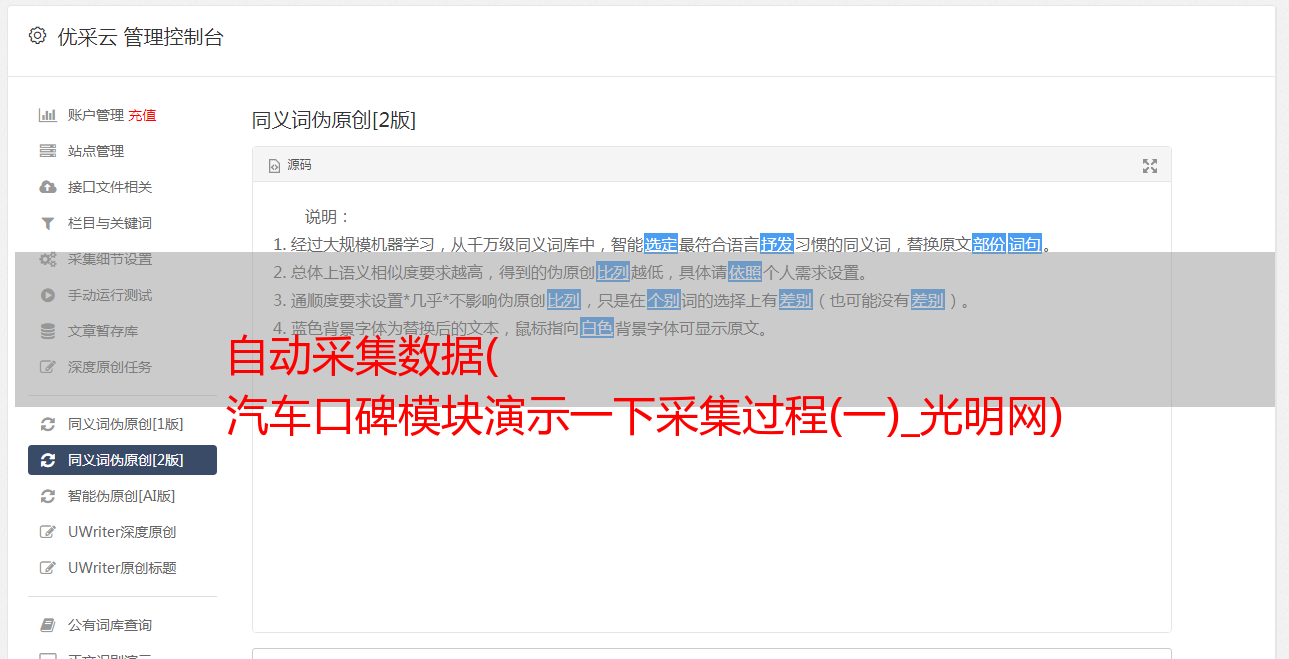 自动采集数据( 汽车口碑模块演示一下采集过程(一)_光明网)
