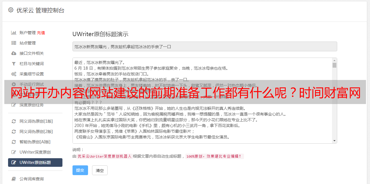 优采云 发布时间: 2021-11-07 13:06网站开办内容(网站建设的前期准备工作都有什么呢?时间财富网接下来)