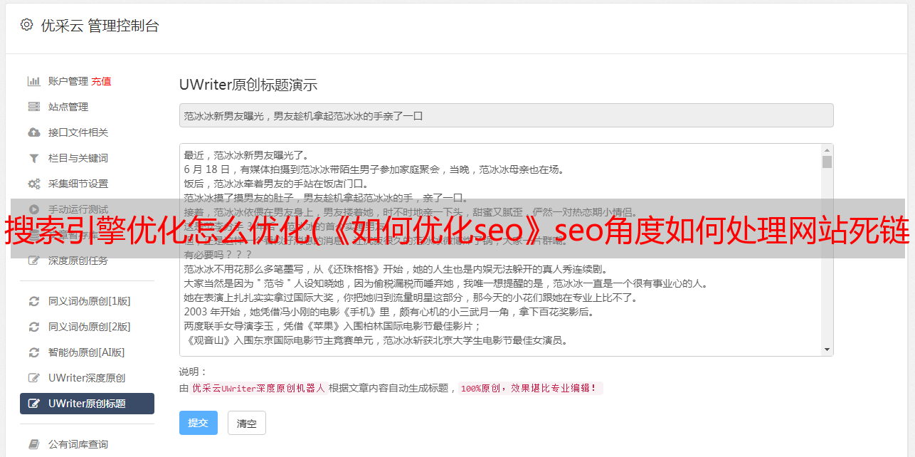 优采云 发布时间: 2021-11-07 17:05搜索引擎优化怎么优化(《如何优化seo》seo角度如何处理网站死链?(图))