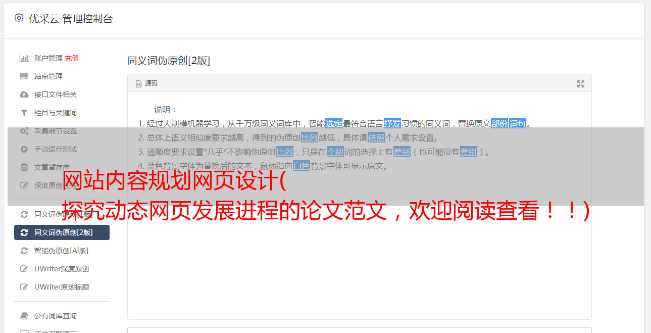 优采云 发布时间: 2021-11-07 19:26网站内容规划网页设计(