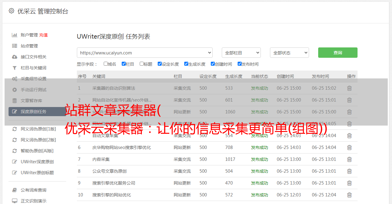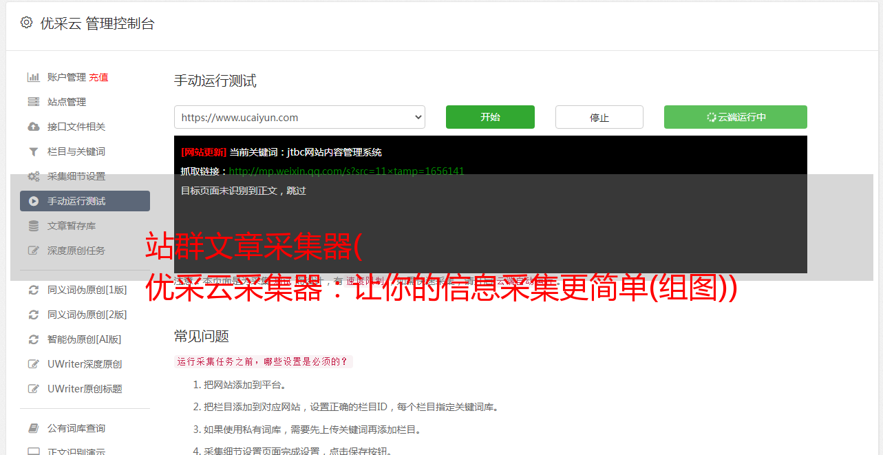 优采云 发布时间: 2021-11-07 20:02站群文章采集器(