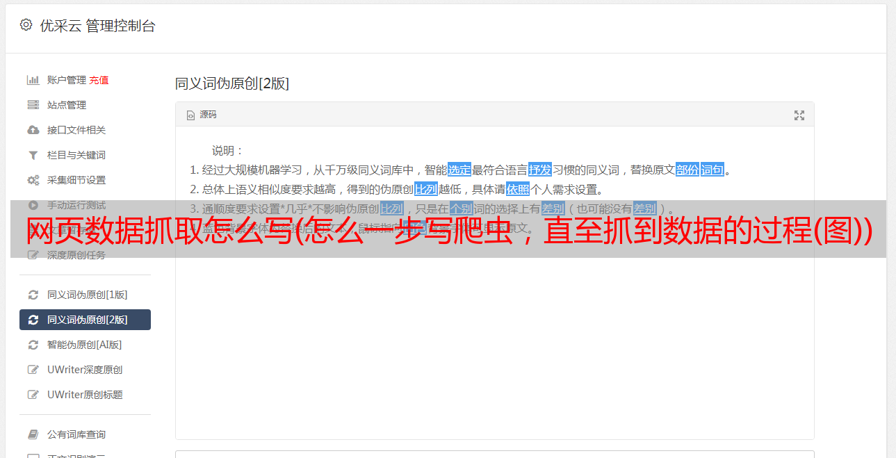 优采云 发布时间: 2021-11-08 00:12网页数据抓取怎么写(怎么一步写爬虫,直至抓到数据的过程(图))